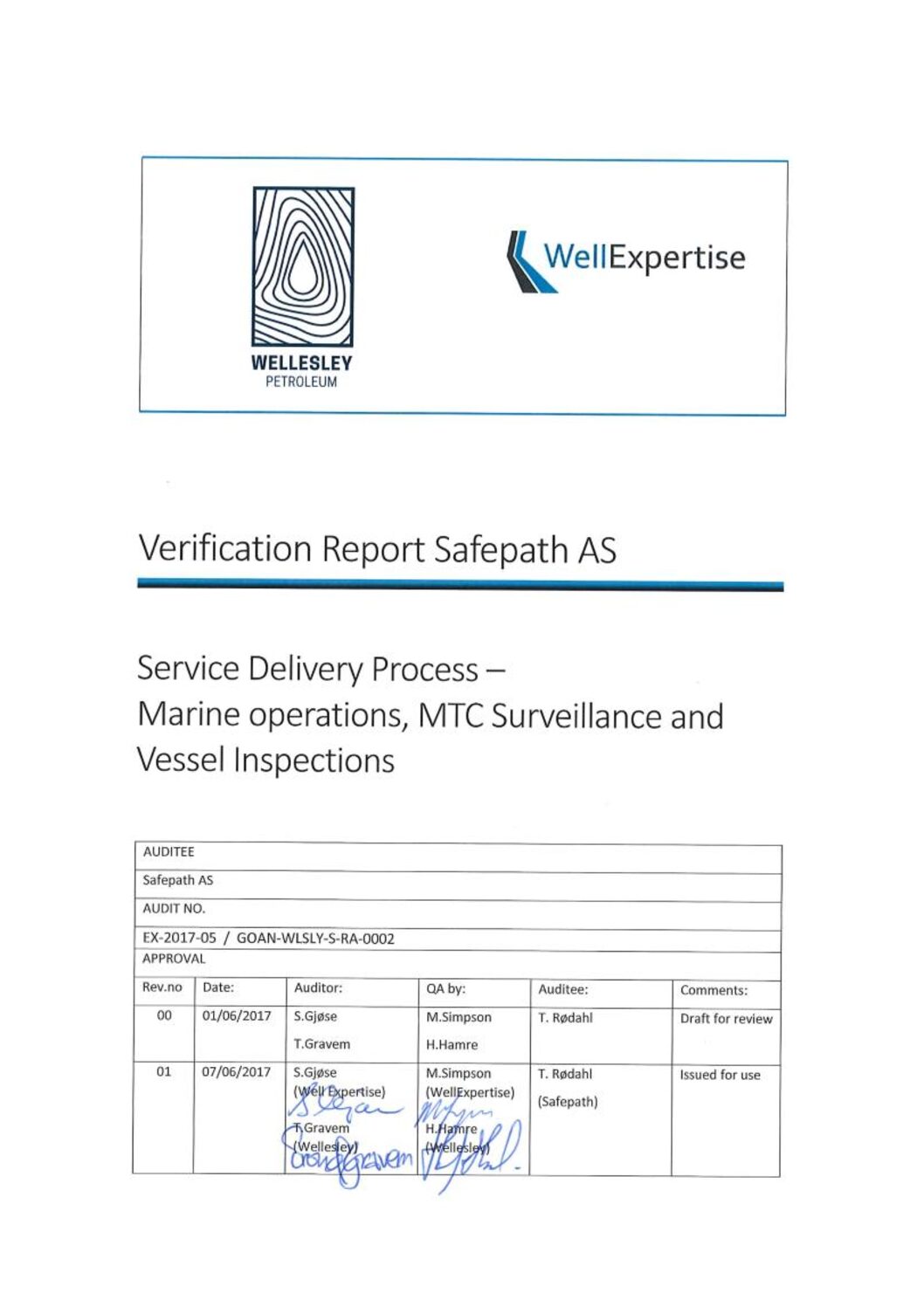 1. Ensure Safepath’s operational performance meets industry standards, Wellesley and Well Expertise