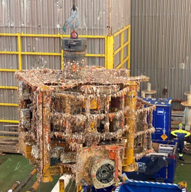 Cleaning required as soon as it arrives onshore. It is not possible to do any effective cleaning on the rig.