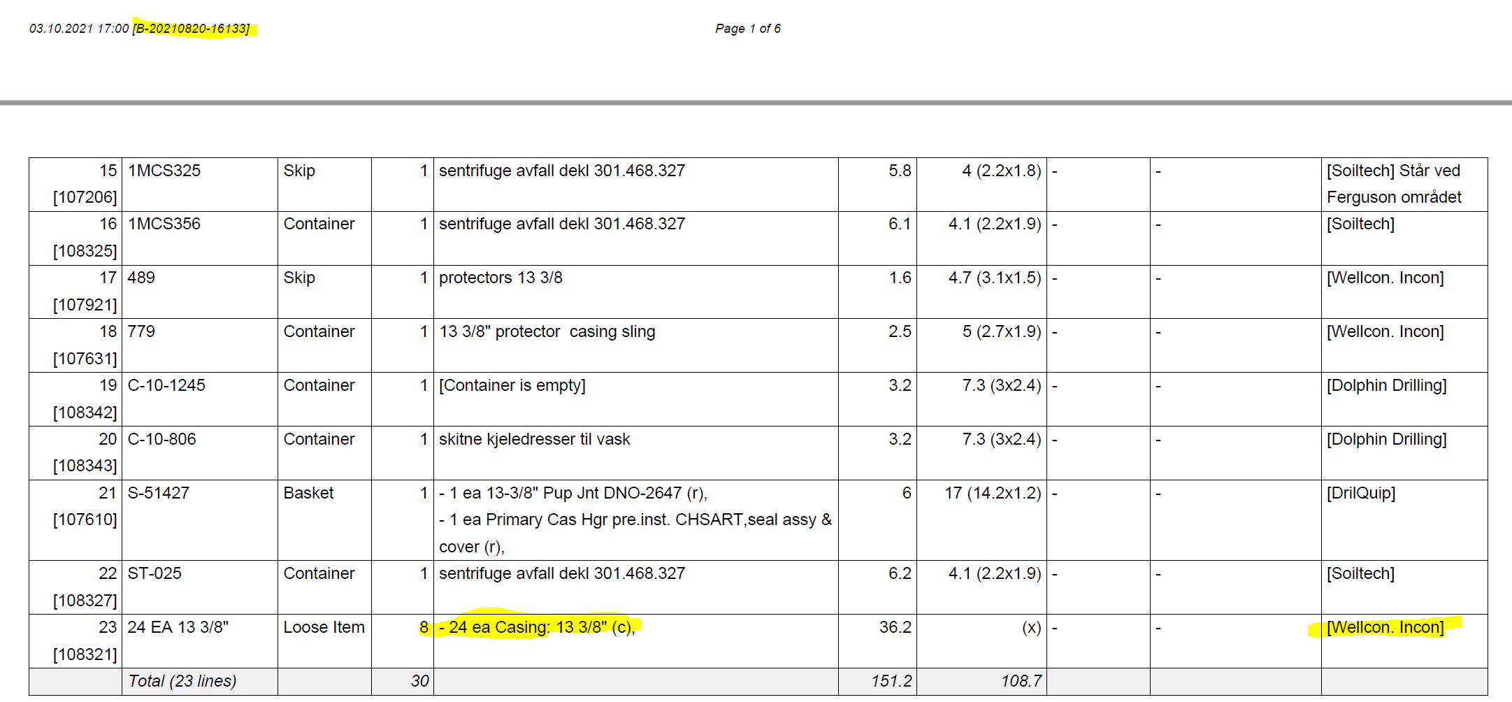 Backloaded with lack of information. Sent to wrong vendor/handled wrong. The casing was mistakenly thought to have been in hole and delivered to Wellcon as per previous Oselvar operations. Should have been Mitsui, however no indication of this was in backload manifest.