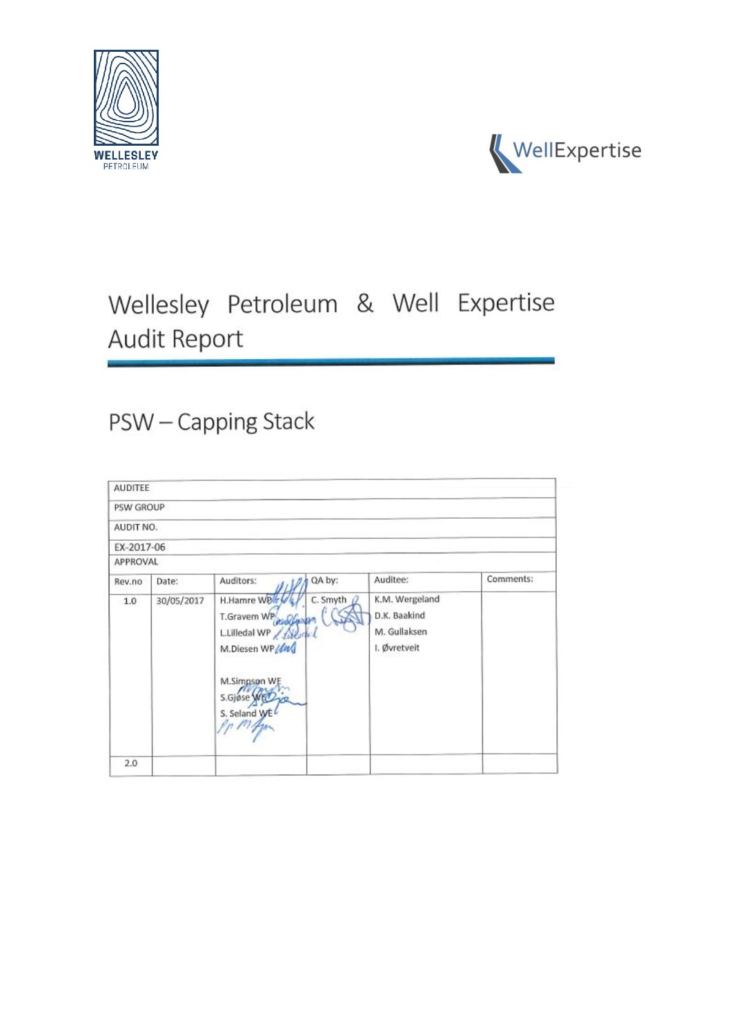 Wllesley Petroleum & Well Expertise Audit Report- PSW-Caping Stack