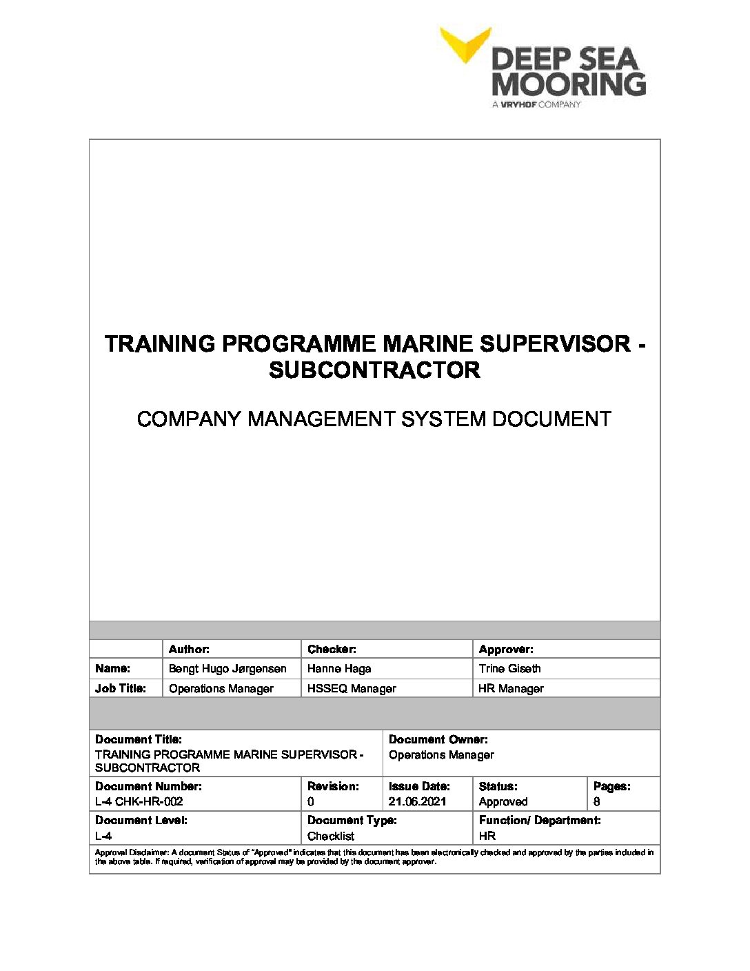 The procedure “Training Programme Marine Supervisor DSM”refers to DSIS.